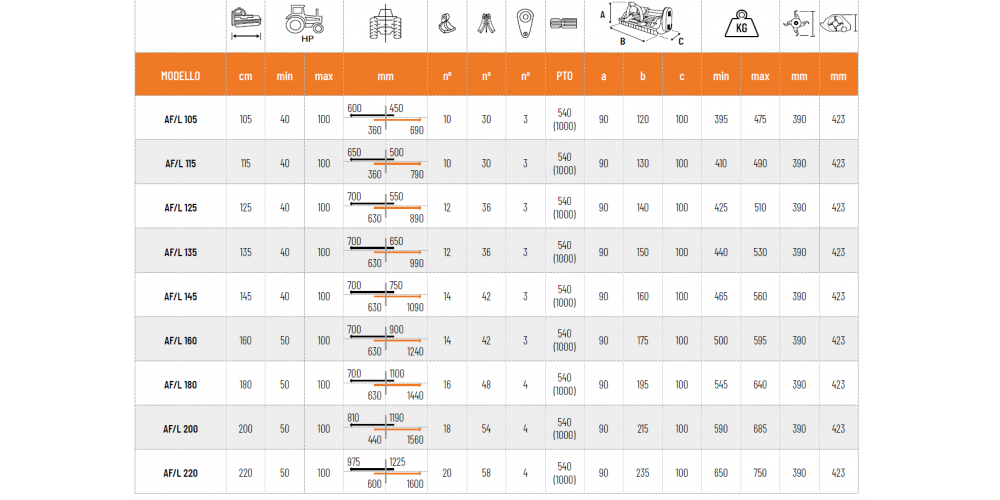 | AF/L 220 | 220 | 50 | 100 |
