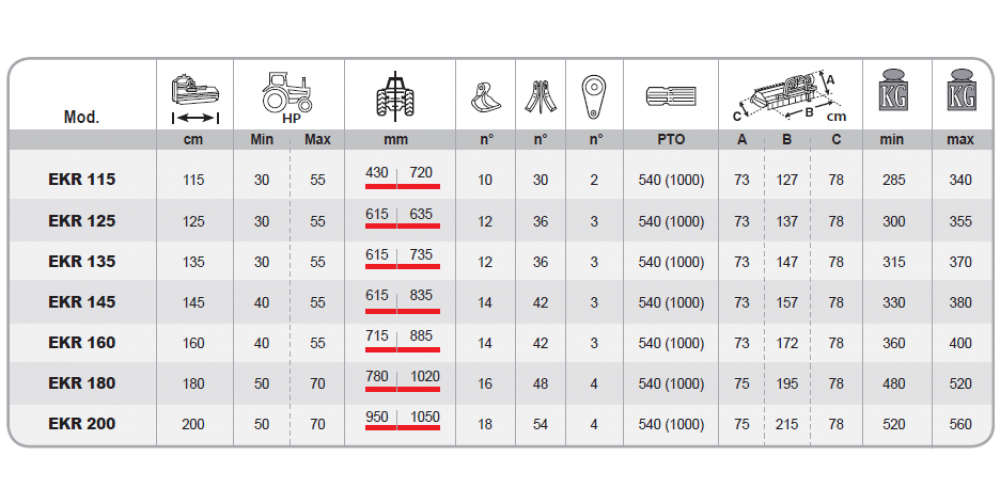 Kompakt, megfordítható üzemmódú traktorokhoz is csatlakoztatható szárzúzók. Zúzásátmérőjük 2-3 cm, teljesítmény igényük 30-70 Le. Alkalmas rétek, mezők, szőlőültetvények karbantartására. Elérhető 115 - 200 cm munkaszélességben.