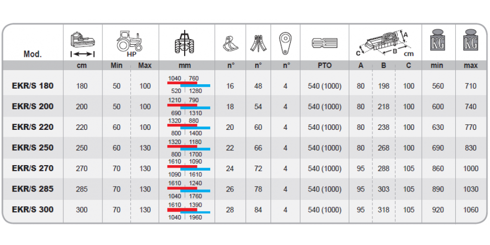 Kompakt, megfordítható üzemmódú traktorokhoz is csatlaskoztatható szárzúzók. Zúzásátmérőjük 4-5 cm, teljesítmény igényük 50-130 Le. Alkalmas rétek, mezők, szőlőültetvények karbantartására. Elérhető 180 - 300 cm munkaszélességben.