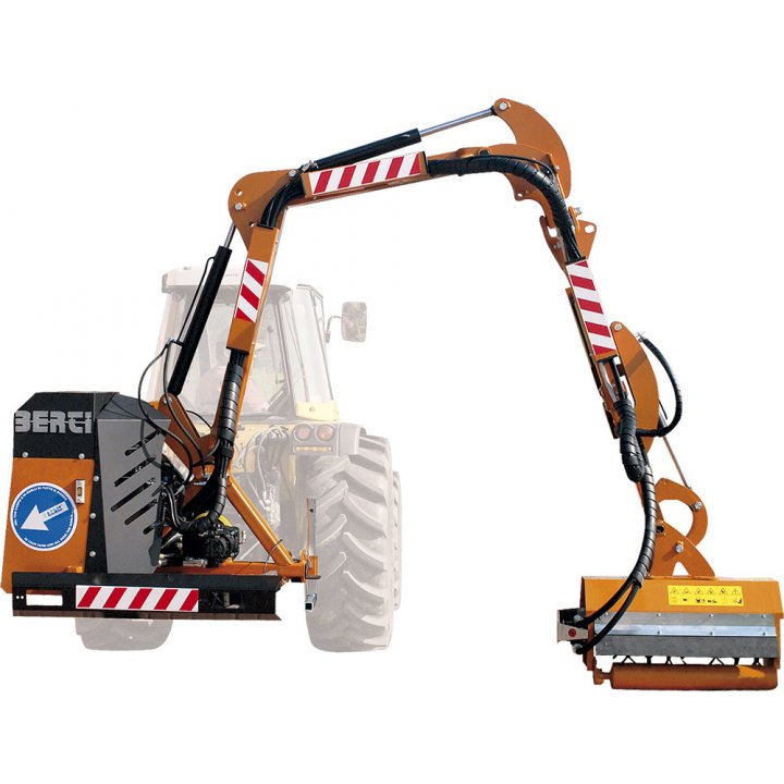 Hidraulikus zúzó hátsó felfüggesztésre. Íves kialakítása lehetővé teszi a kezelő számára, hogy sövényeken, lugasokon öntözőrendszereken átívelve dolgozhasson. Fűnyírásra és fás szárú növényzet irtására alkalmas egészen 3 cm átmérőig. 60-90 Le teljesítmény