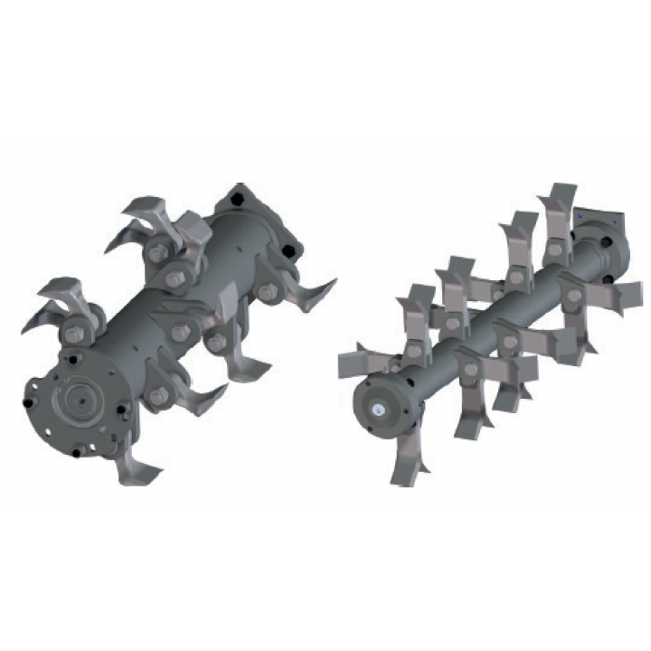 20-50 Le teljesítményű skid loaderhez való szárzúzó, mely 2-3 cm átmérőjű fás szárak zúzására képes.