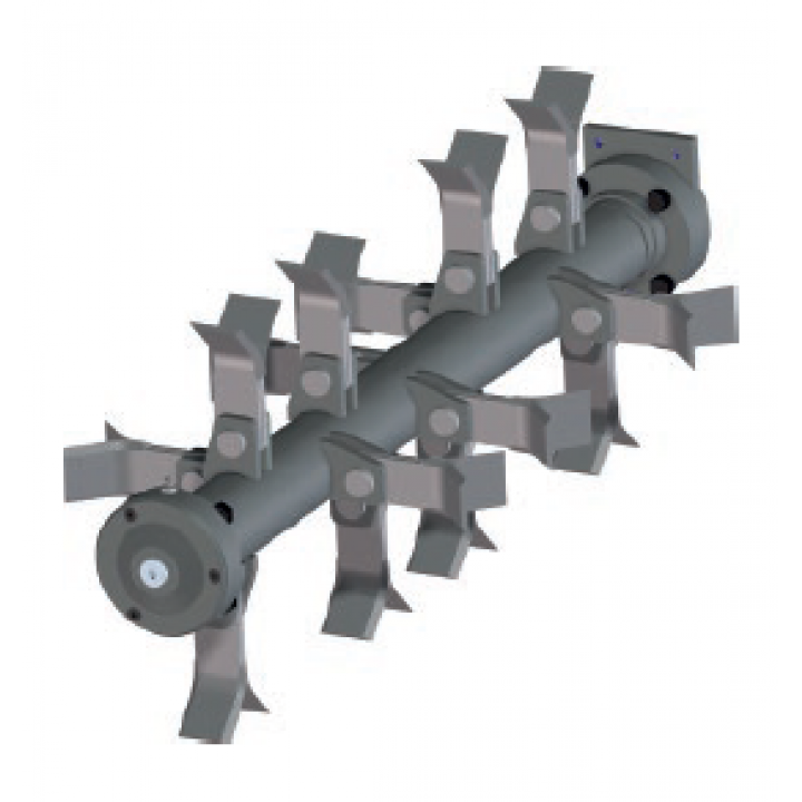 2-4 tonnás minikotrókhoz ajánlott hidraulikus szárzúzó, mely 2 cm ágvastagságig képes a fás szárakat mulcsolni.