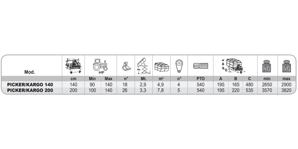 A Picker Kargo vontatott zúzók BERTI® konténerrel és mechanikus "felszedő-rotor"-ral készülnek. Extra finomságúra zúzzák a max. 12 cm átmérőjű gallyakat, és minden fás szárú anyagot. Megművelt, vagy nagyon köves-kavicsos területeken kifejezetten ajánlott ezt a zúzót alkalmazni. 90-140 Le a teljesítményigénye, 140 és 200 cm munkaszélességben érhető el. A zúzott anyagot saját konténerébe gyűjti.
