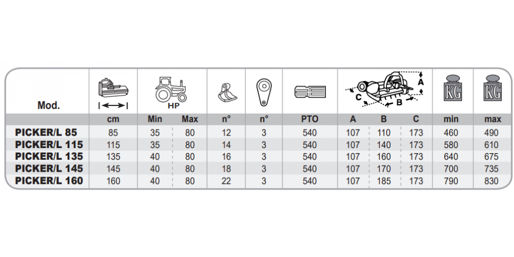 | PICKER/L 160 | 160 | 40 | 80 |