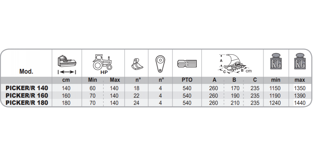 A Picker R zúzók speciális BERTI® kihordó kéménnyel és mechanikus "felszedő-rotor"-ral készülnek. Extra finomságúra zúzzák a max. 8 cm átmérőjű gallyakat, venyigéket és minden fás szárú anyagot. Megművelt, vagy nagyon köves-kavicsos területeken kifejezetten ajánlott ezt a zúzót alkalmazni. 60-140 Le a teljesítményigénye, 140-180 cm munkaszélességben érhető el. A zúzott anyagot a kívánt helyre gyűjti.