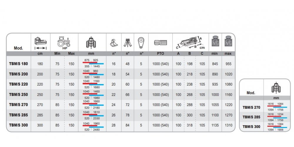 | TBM/S 250 | 250 | 75 | 150 |